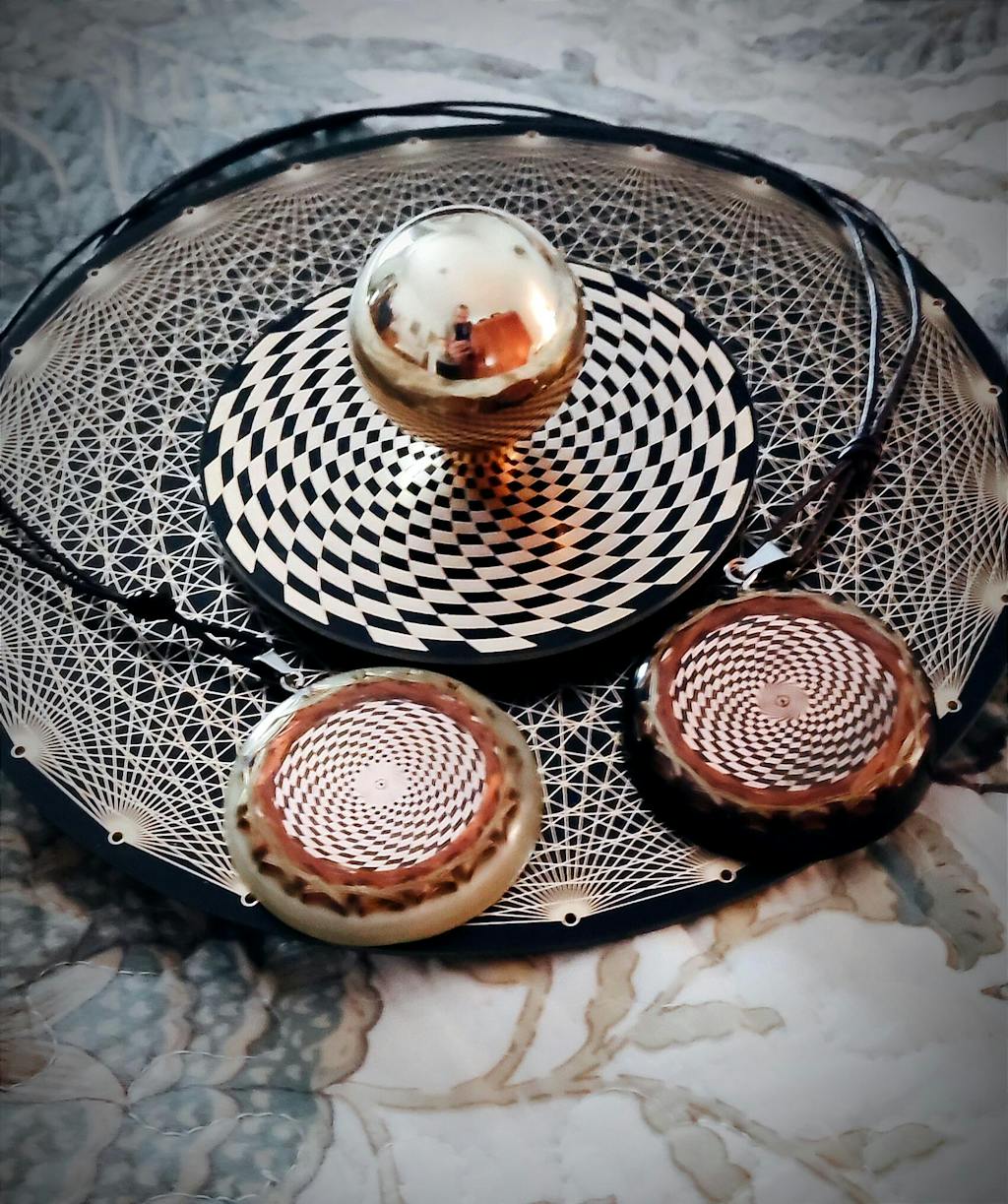 - A Quantum Resonance Plate with sacred geometry and double coil.